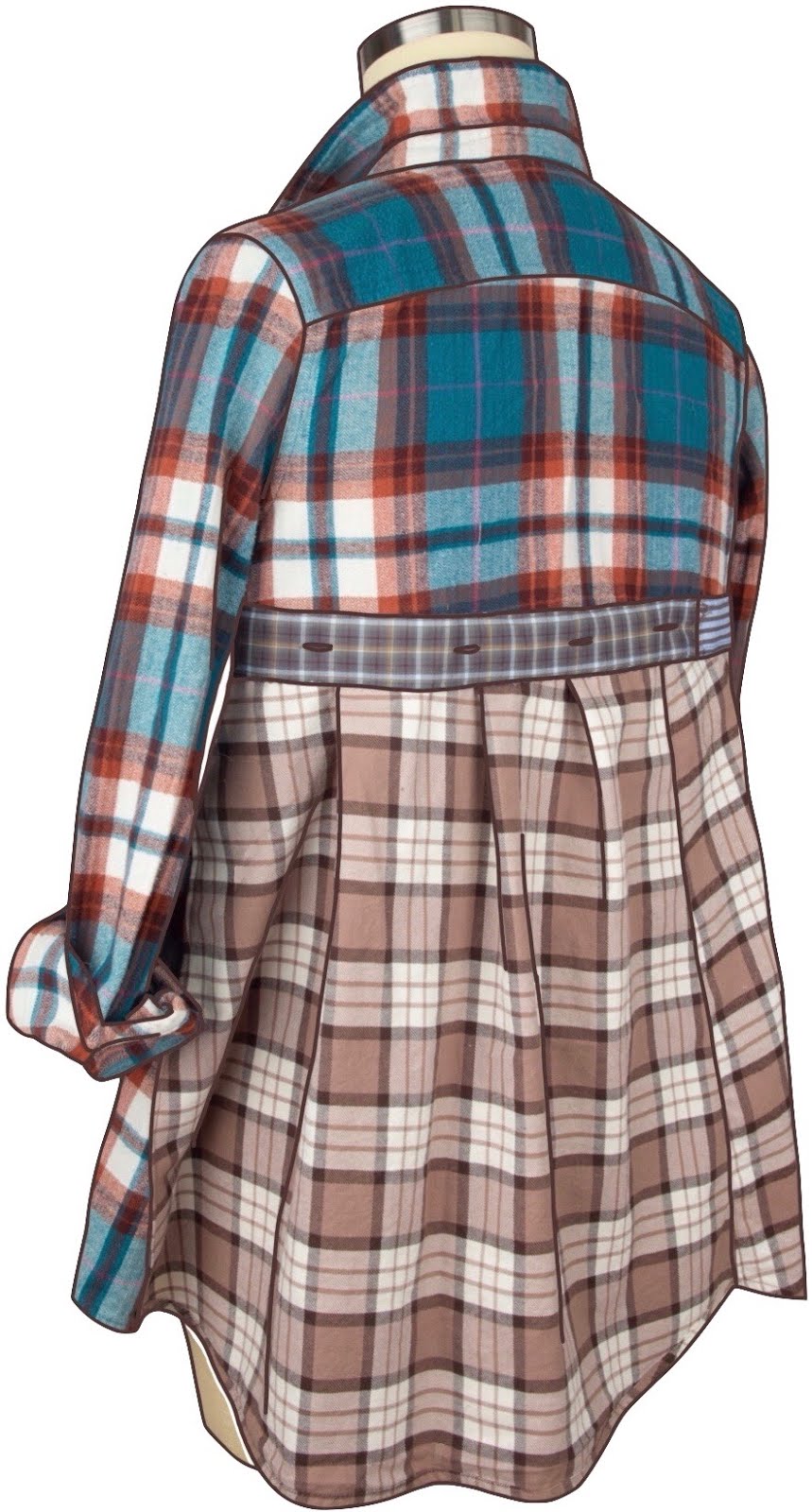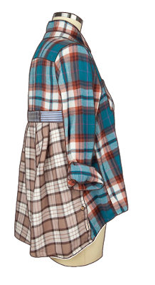 One of the best parts of upcycling? The sleeves have already been set, the placket is already done with buttonholes sewn, buttons attached, and the collar and collar point are complete before you even start! This is truly simple sewing.By using various color schemes the Patti can work for any season. The flannel and denim version above is perfect for fall and winter.