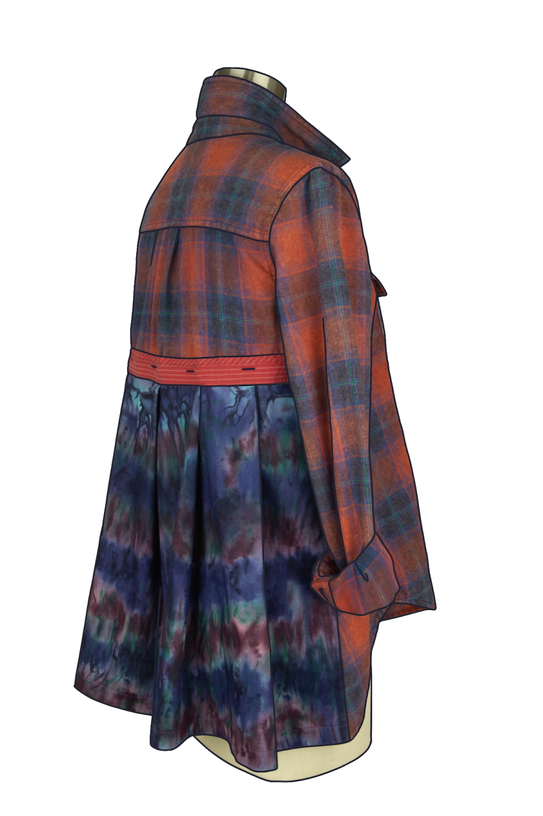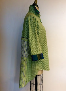This talented customer added an inverted pleat in the center of the lower back panel. With the collar buttoned all the way up and a cluster of necklaces I think the overall effect is quite elegant.